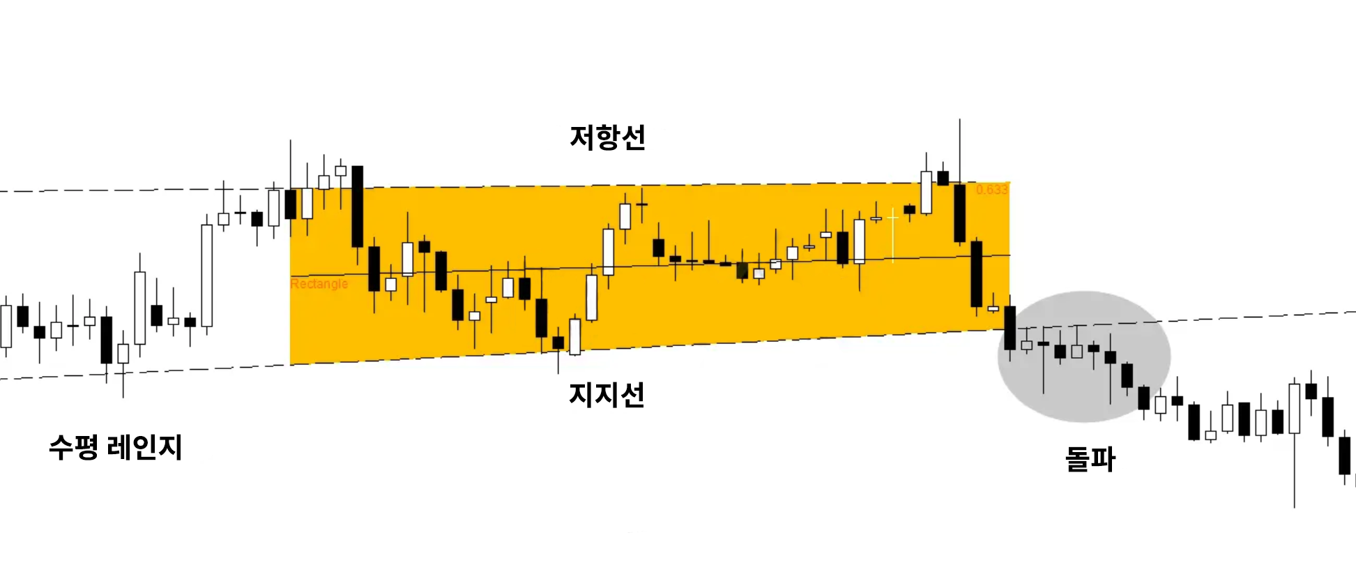 레인지에서의 돌파는 대부분 명확하지 않고 직관적이지 않은 경우가 많습니다. 이로 인해 돌파 전략이나 레인지 거래가 다소 어려워질 수 있습니다.